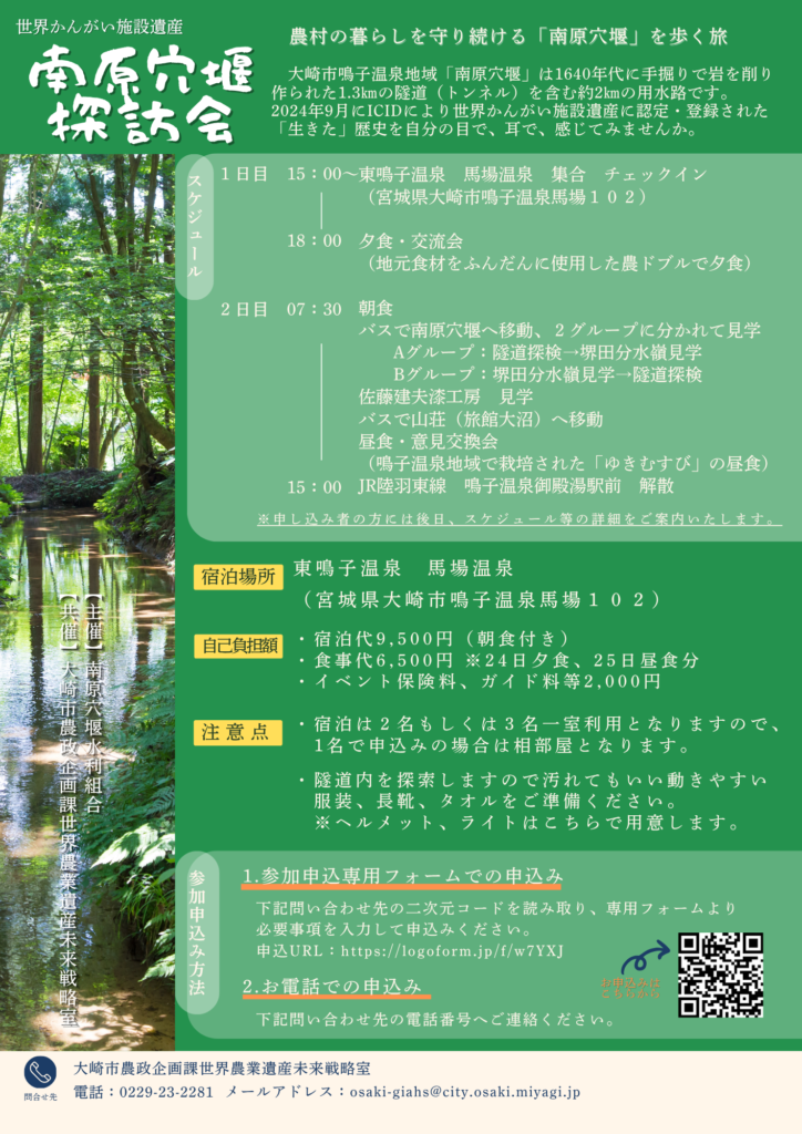 世界かんがい施設遺産「南原穴堰」 探訪会のお知らせ